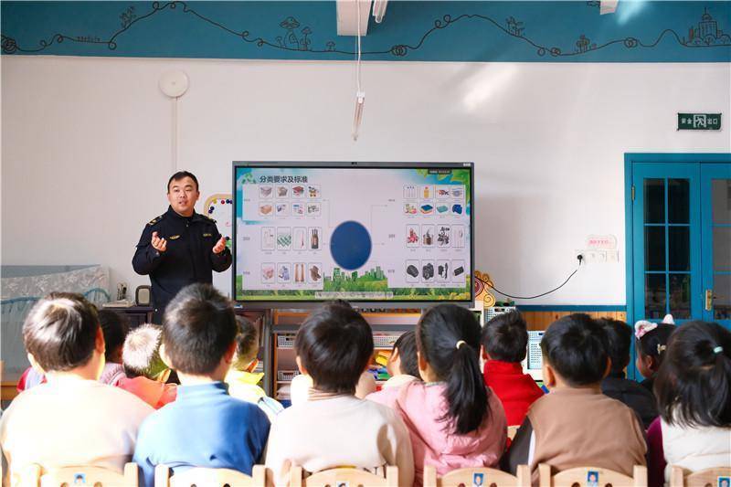 活动中,亳州路街道综合执法队队员化身“环保讲师”,用生动的语言结合果皮、塑料瓶、废旧电池等实物,为孩子们讲解四类垃圾的分类标准和投放要求,将趣味性与知识性相融合,充分调动孩子们的学习兴趣。