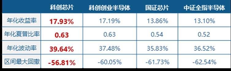 数据显示,截至2025年末,上证科创板芯片指数基日以来年化收益率达17.93%,显著优于科创创业半导体、国证芯片、中证全指半导体等同类指数表现,同时最大回撤更小,风险收益比更好。