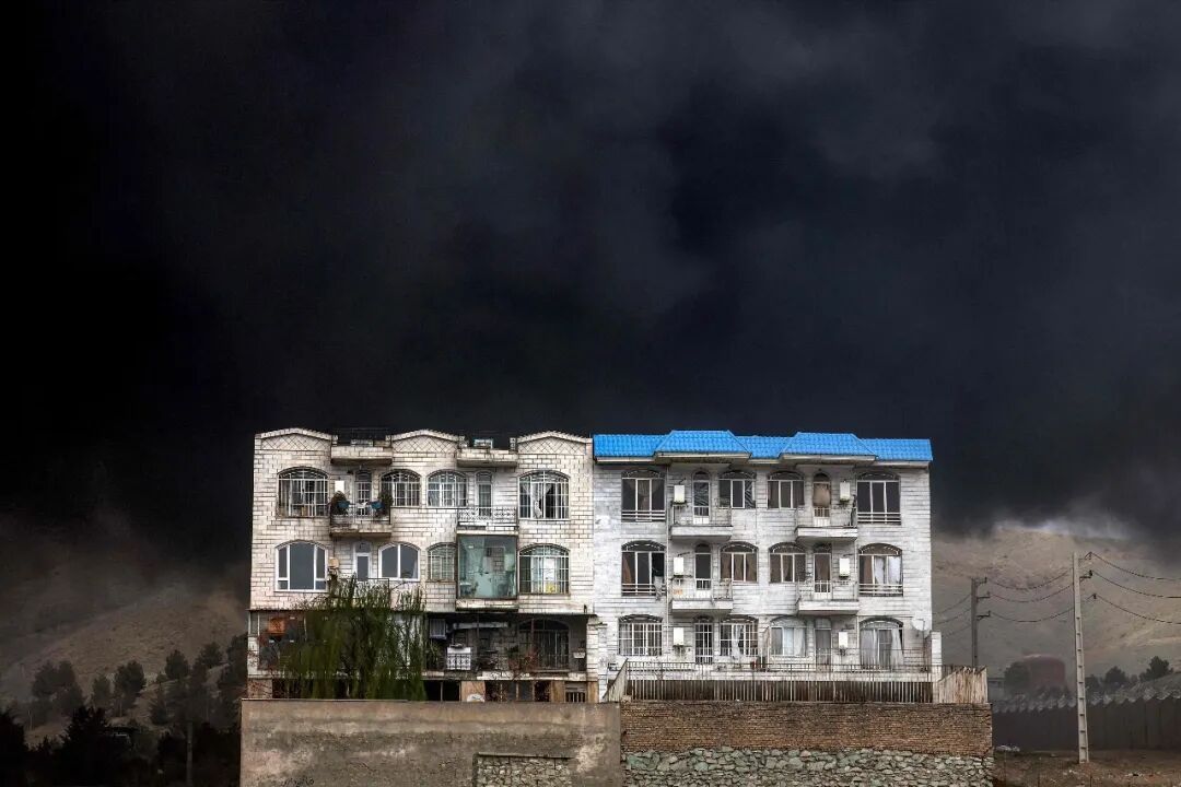 这是3月8日在伊朗首都德黑兰一处储油设施附近拍摄的被浓烟笼罩的居民楼。新华社/法新
