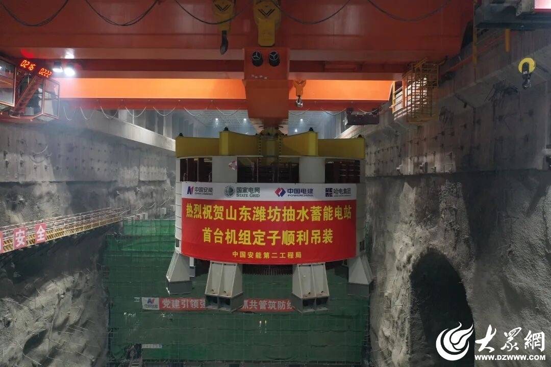 r作为山东省新旧动能转换重大项目,1月27日,潍坊抽水蓄能电站项目迎来重大节点,重达468.2吨的电站首台机组“心脏”部件定子实现一次性精准就位,标志着该项目正式从设备组装阶段进入核心设备安装攻坚期,为首台机组按期投产发电奠定坚实基础。