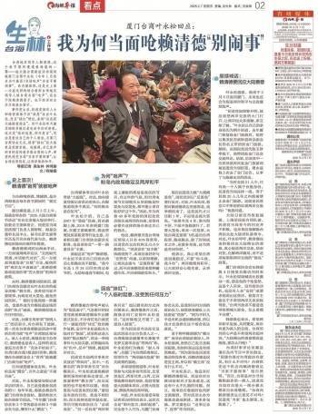 台湾海基会举办“2025大陆台商春节活动”,厦门台商叶永松当场呛声赖清德“别闹事”,此一新闻在两岸引起高度关注。导报记者凭借人脉与渠道优势,迅速锁定“新闻当事人”叶永松先生。尽管当时他本人尚在台北,为抢占报道先机,记者果断进行跨海电话独家专访。